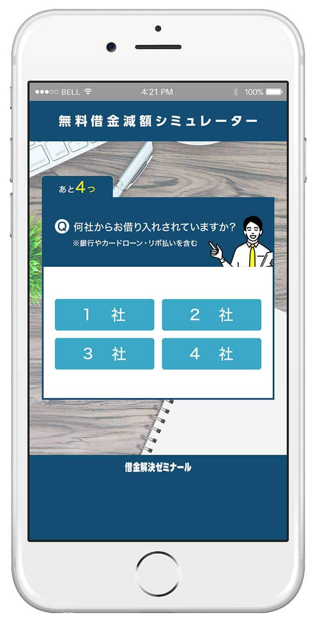 「借金減額シミュレーター」に今のあなたの状況を入力することであなたの借金が減額できるかがわかります。